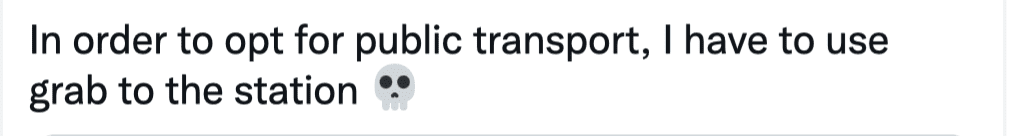 Another netizen wrote that even if he were to opt for public transport, he would have to take a Grab ride to a nearby station, thus defeating the purpose altogether.