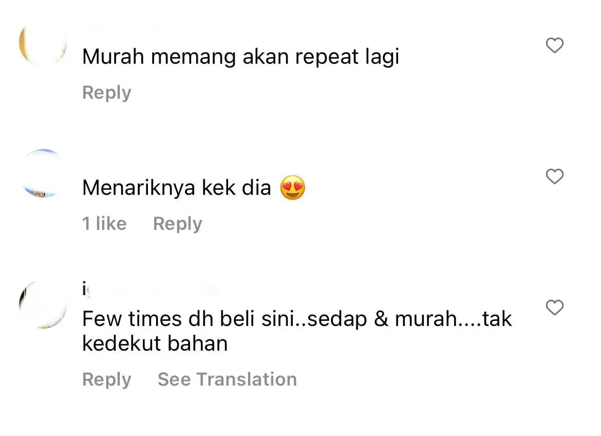 Meninjau ke ruangan komen, wargamaya setuju bahawa kek di sini amatlah murah dan begitu sedap untuk dinikmati bersama orang tersayang.