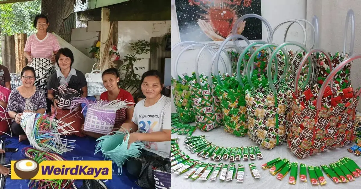 A team of 6 weavers is now undertaking the upcycling project, transforming used MILO stick packs and sachets into practical tote bags and coasters.