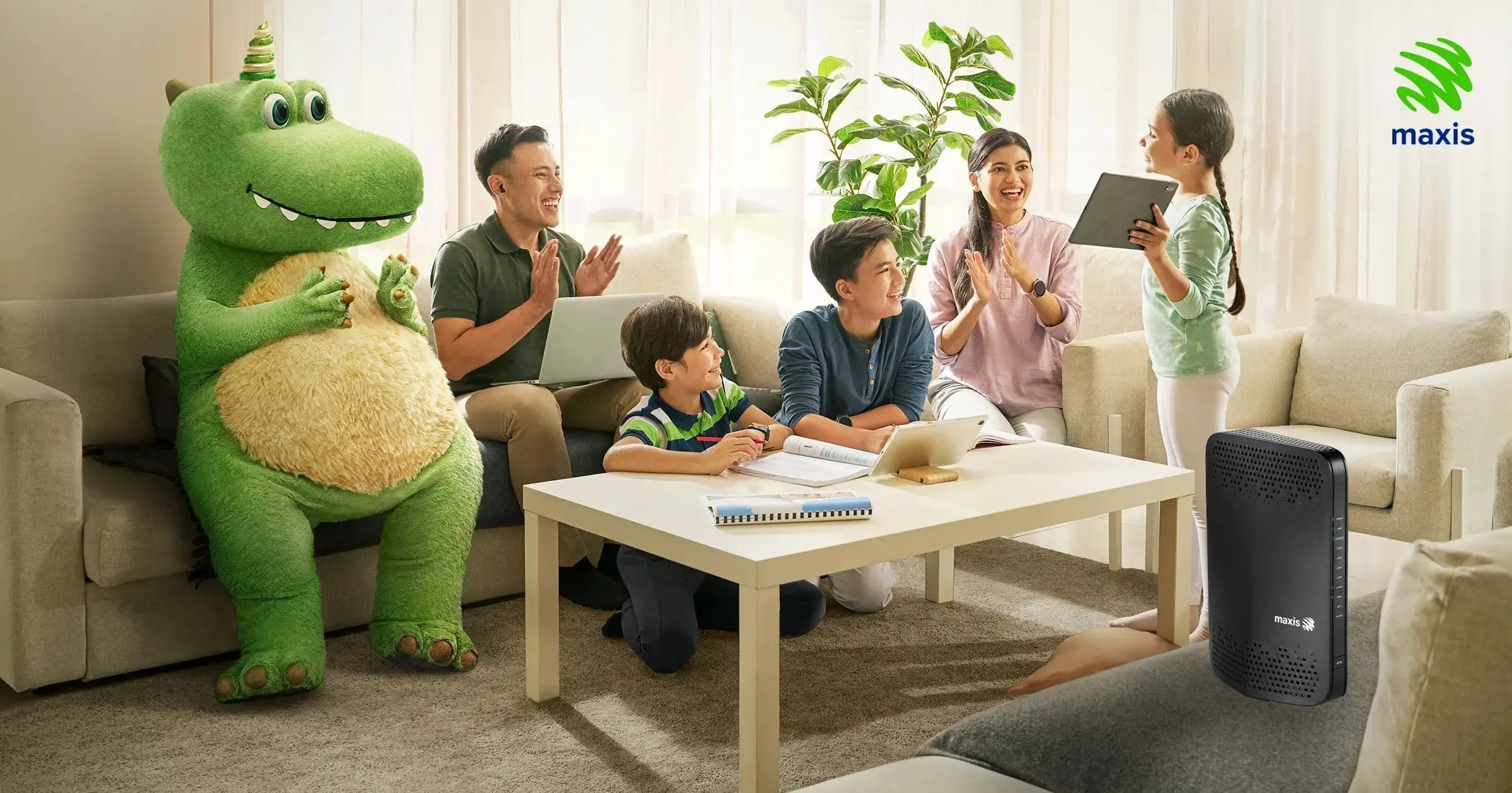 Did you watch the videos of dinocorn adorably lying on the field, holding the Maxis Home Fibre router? It’s the perfect symbol of what’s coming next for your home WiFi experience!