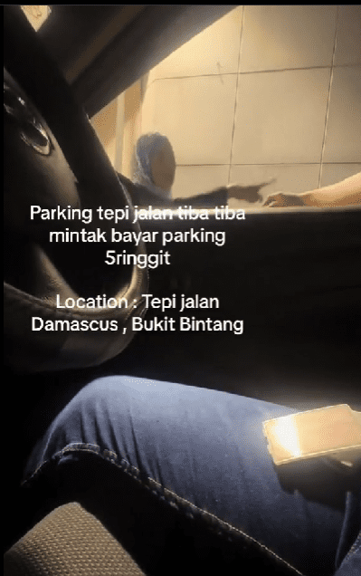 “Parked by the roadside in Damascus, Bukit Bintang, and suddenly someone is asking for RM5,” the tweet stated.