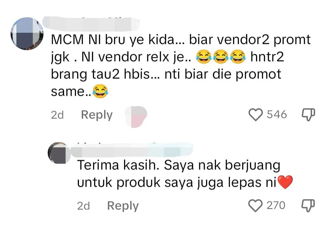 “Terima kasih selalu support Kieda, nak support saya boleh nak support vendor pun boleh.