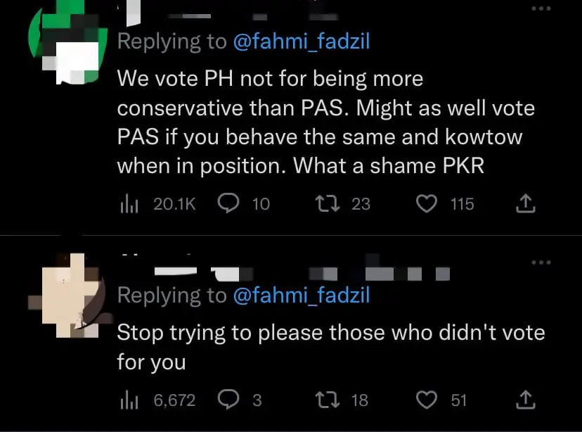 Meanwhile, some have also accused Fahmi of bowing to pressure and pandering to conservatives.