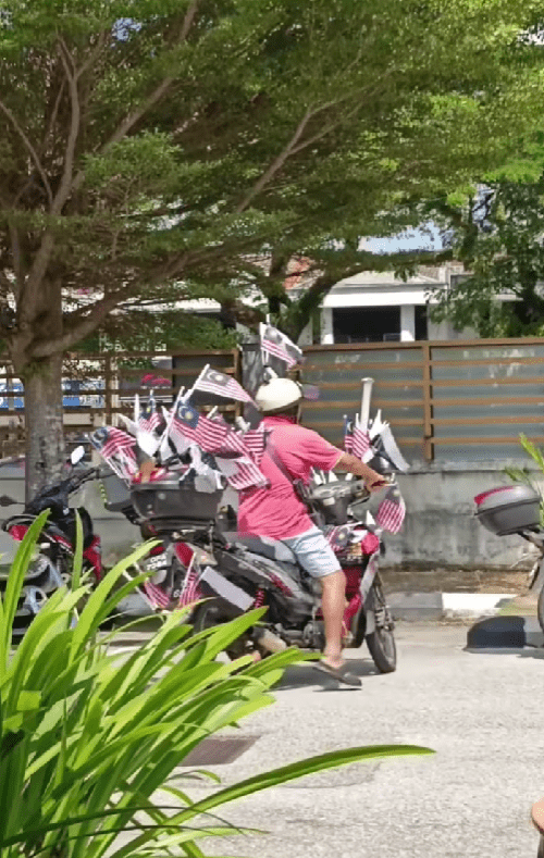 A Malaysian uncle has taken Merdeka spirit to a whole new level — by decorating his entire motorbike (and even his helmet) with countless Jalur Gemilang and Pahang state flags.