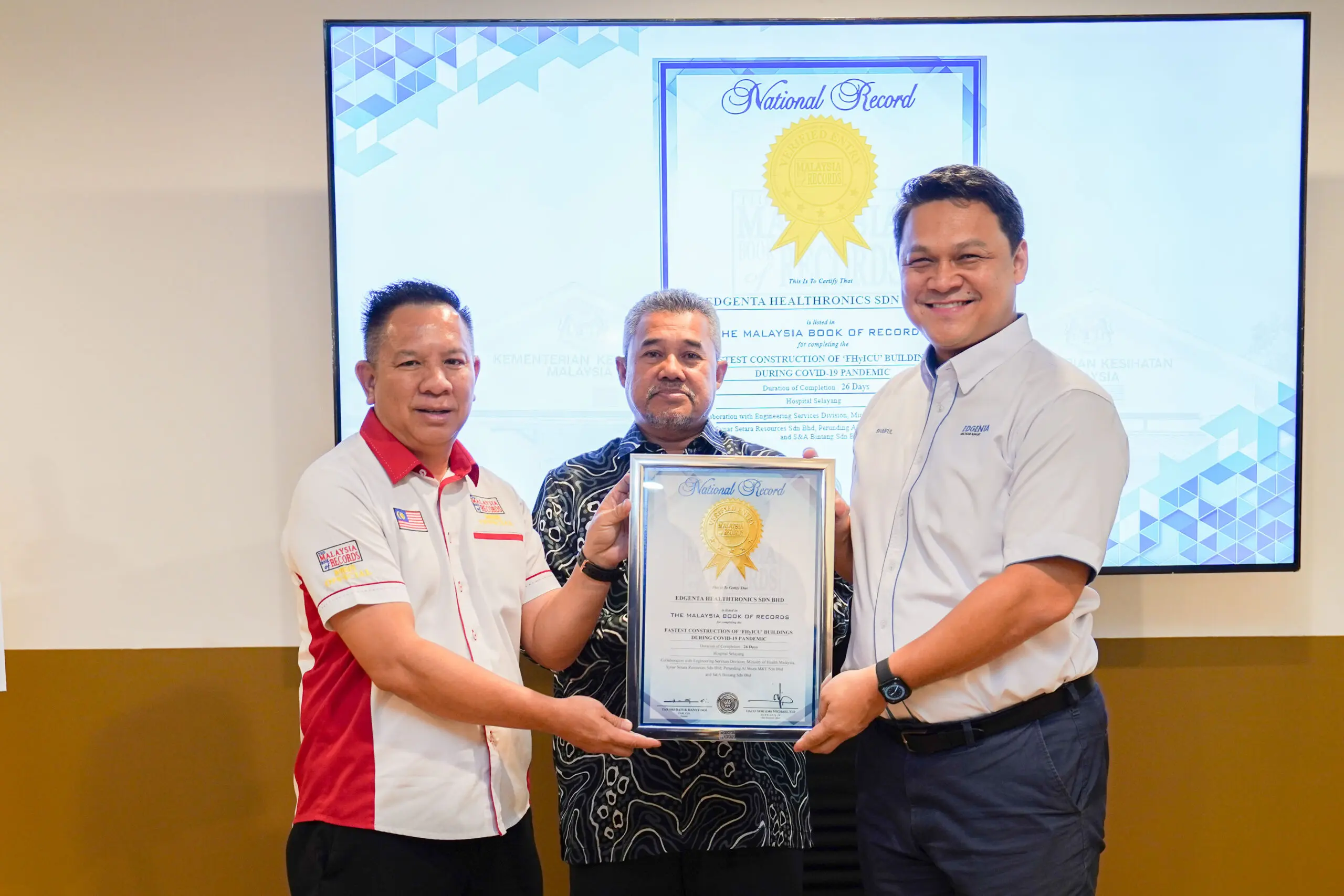In yet another demonstration of excellence, the Company’s subsidiary, Edgenta Healthtronics Sdn Bhd (“EHSB”), recently bagged the award for “FASTEST CONSTRUCTION OF FHyICU BUILDING DURING COVID-19 PANDEMIC” by the Malaysia Book of Records (“MBOR”).