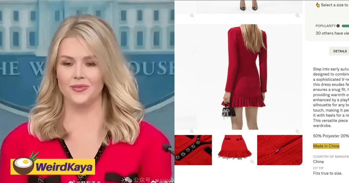 Photos of White House press secretary Karoline Leavitt wearing a red lace dress during a recent briefing have gone viral on Chinese social media — not for the outfit’s design, but for where it was reportedly made.