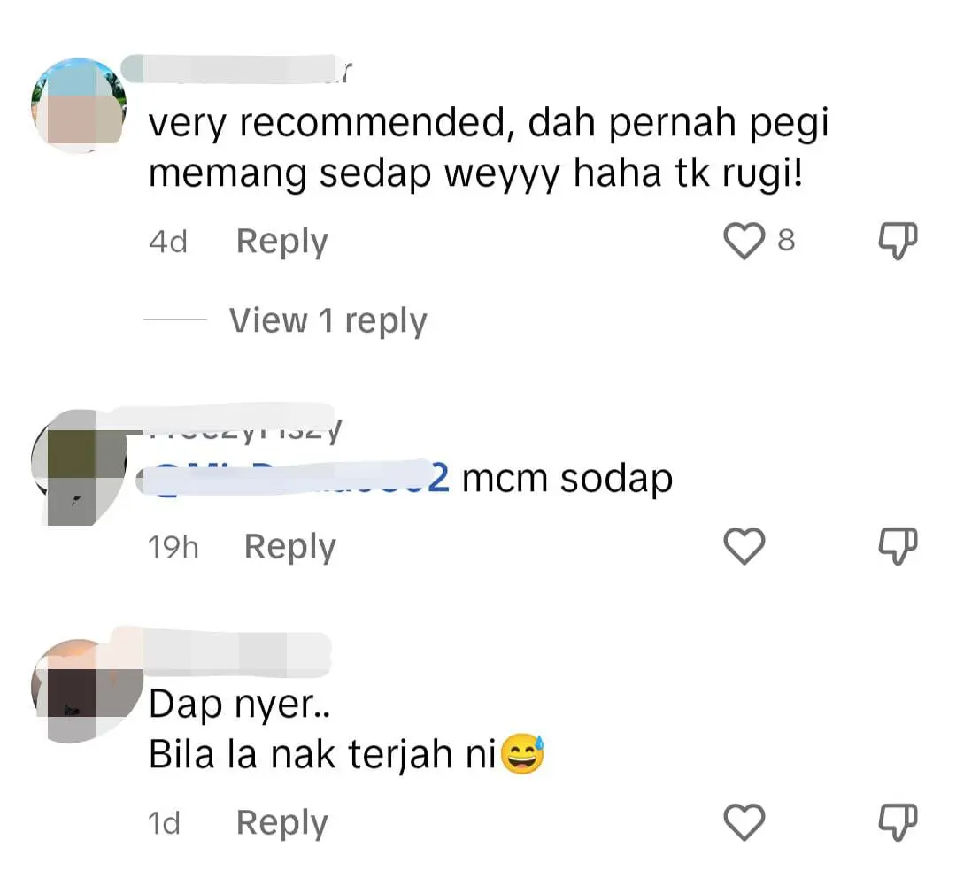 Menjengah ke ruangan komen, rata-rata wargamaya memberikan reaksi positif dan memuji kesedapan dan kualiti masakan di restoran Selera Kampung Kita.