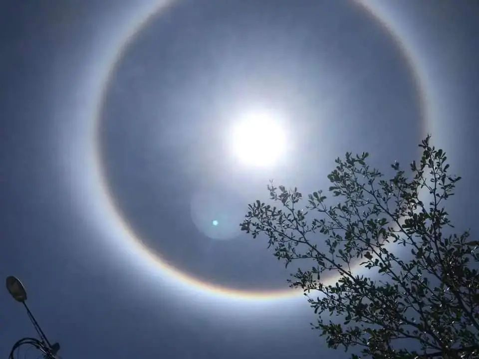The ‘Sun Halo’ phenomenon typically occurs when light emitted by the sun or moon comes in contact with ice crystals hovering in the atmosphere.