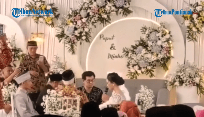 In a video posted on Facebook by Tribun Network on Monday (June 20), it showed the wedding ceremony of the man named Lee Minho (no joke) and the bride Puput Norma Desyta.