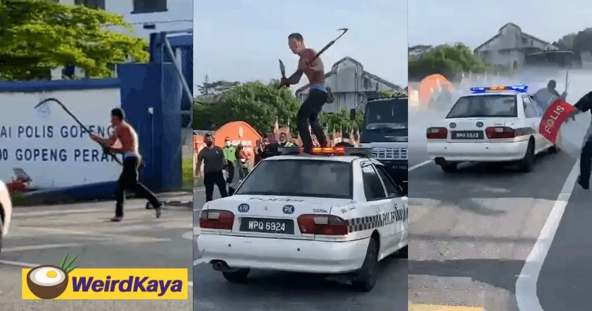 As reported by SinarHarian, the incident occurred outside Gopeng Police Station. The police were weary of the armed suspect and could not approach him.