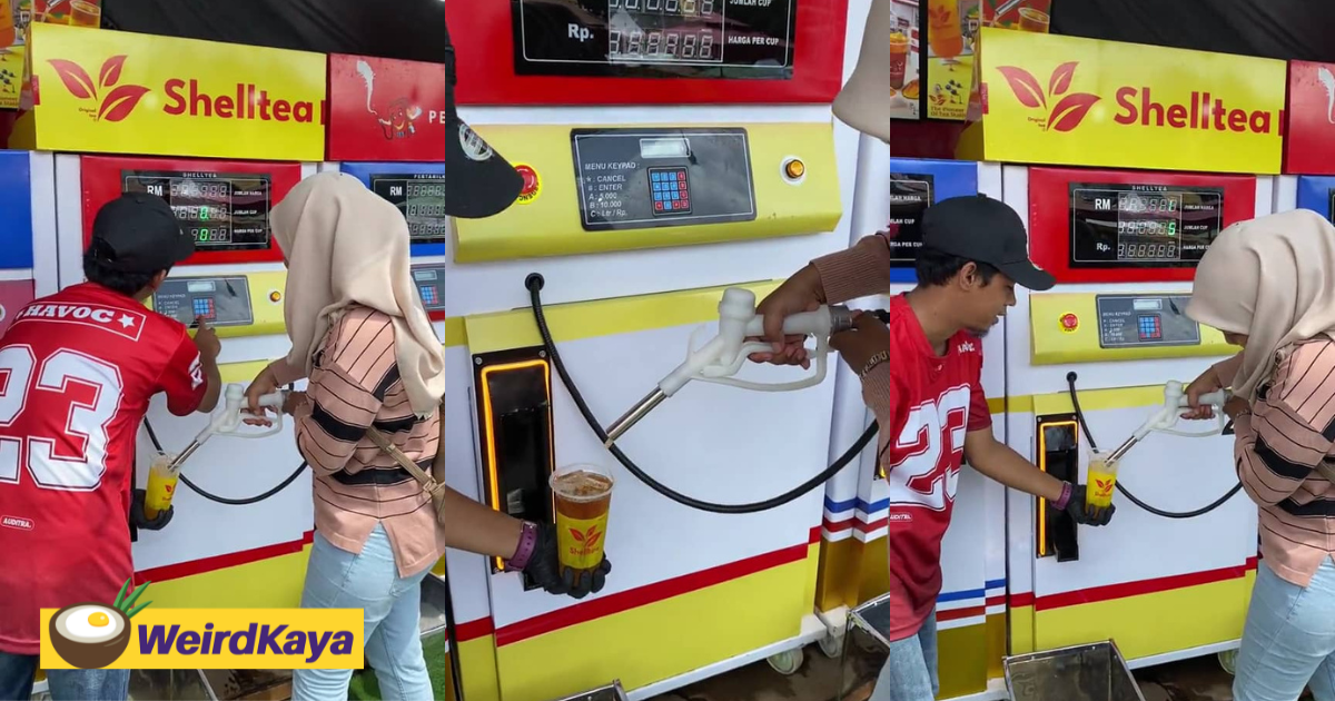 A vendor at the Food Festival Havoc at Stadium Hang Jebat decided to take things up a notch by bringing a petrol station vibe to their tea setup, complete with actual petrol pumps.