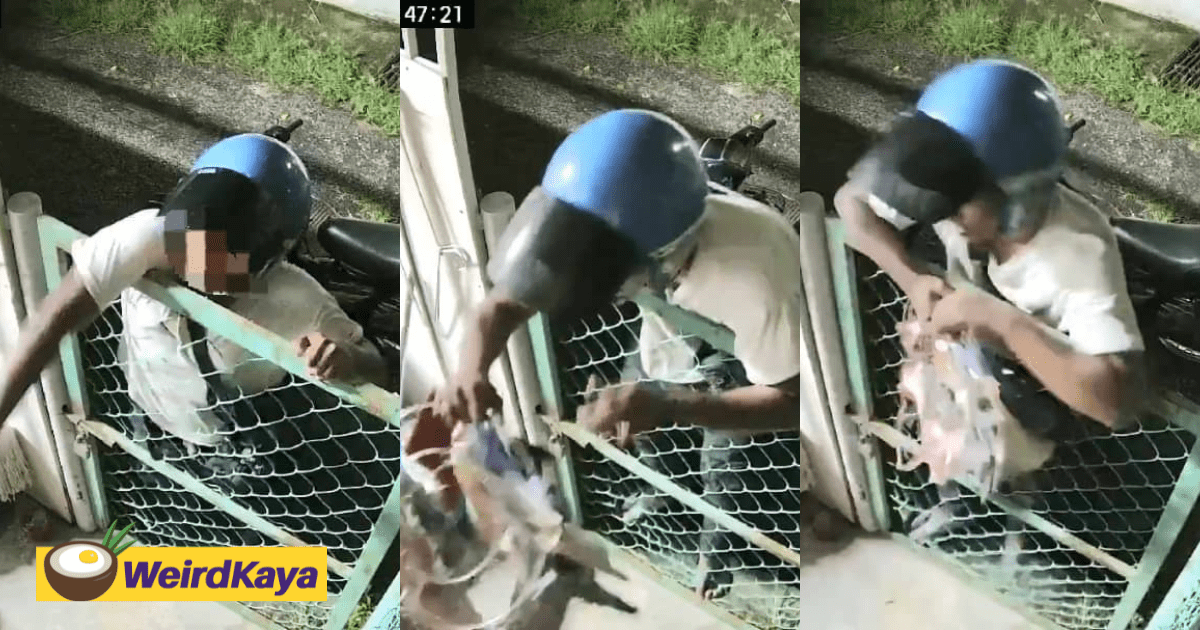 Shared by user X, @update11111, the one-minute-long footage shows a man wearing a blue helmet parked his motorcycle outside the house and cautiously surveyed his surroundings before committing the crime.