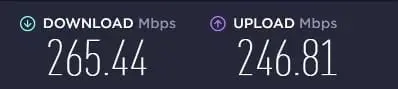 - Download: 265.44 Mbps (Not too shabby.)