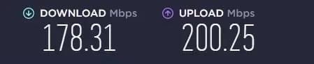 - Download:178.31 Mbps (Could be better.)