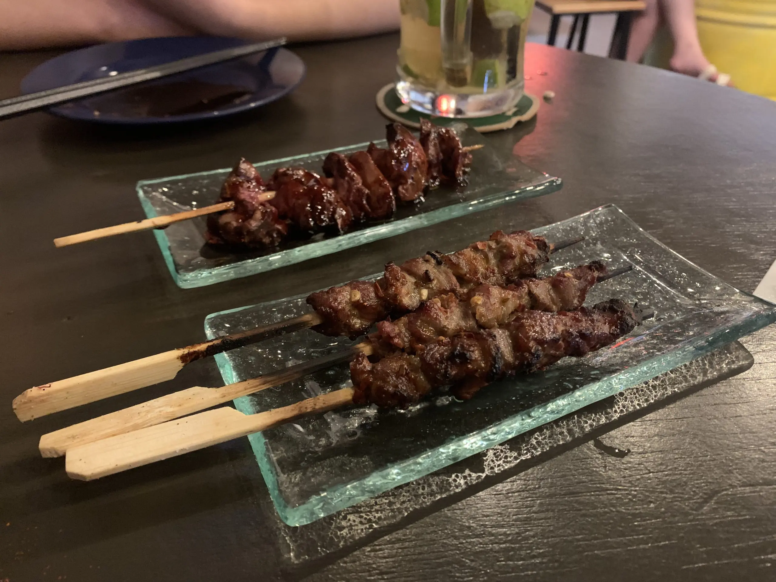 The skewer is a combination of fats and the meat itself. In my opinion, the fats really compliment the flavour of the meat. Some parts where there isn’t any fats is a little tough though.