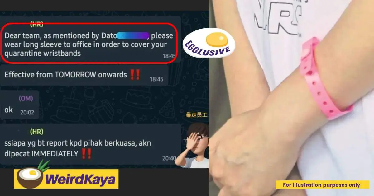 Please wear long sleeve to office in order to cover your quarantine wristbands.“