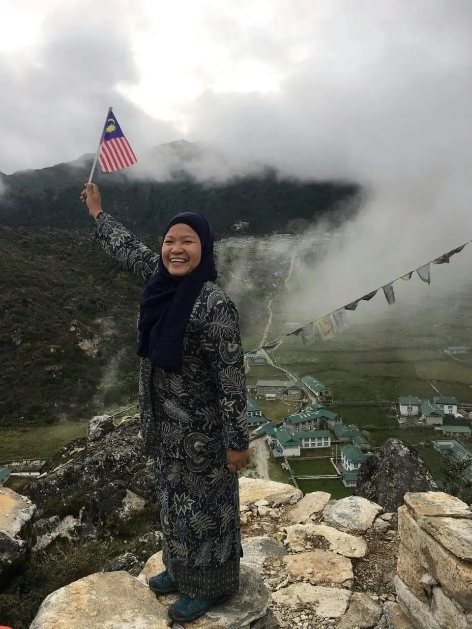 She went on to clarify that she had not only scaled Annapurna Basecamp in Nepal but also Khumjung Village, above the Namchee Bazaar on the way to Everest Basecamp – both while wearing her Kebayas.