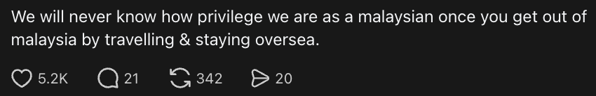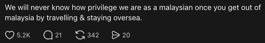 We will never know how privileged we are as Malaysians until you travel and stay overseas.”