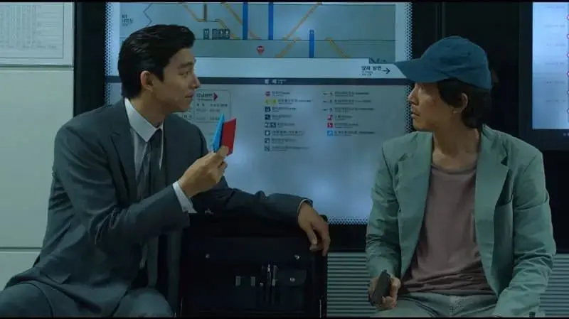 This is in reference to the scene where the main character, Gi Hun is approached by Korean heartthrob Gong Yoo at a train station and is offered 100,000 won (RM355) if he wins a game of ddakji.
