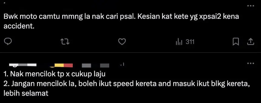 While opinions are largely against the motorcyclist, some users pointed out that more signage or warnings could help prevent such incidents, suggesting the bridge area may lack sufficient road safety reminders.