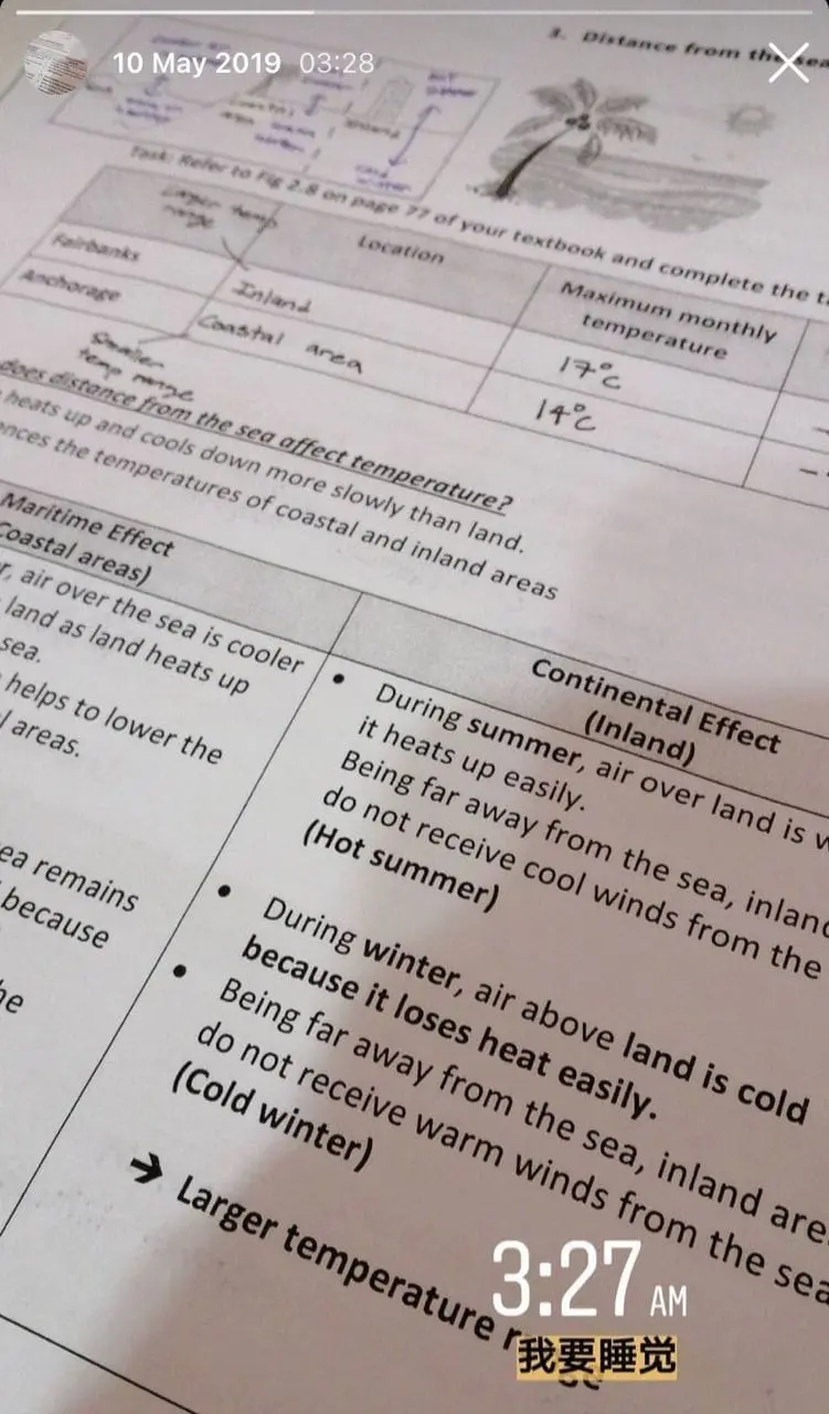 During exam periods, I’d sleep 1 or 2 hours earlier than usual and wake up at 2am to study for the upcoming paper that day.