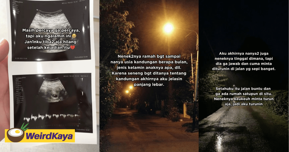 A woman in Jakarta has claimed her baby in womb went ‘missing’ after she gave a ride on her motorcycle to a mysterious grandma, one late evening.