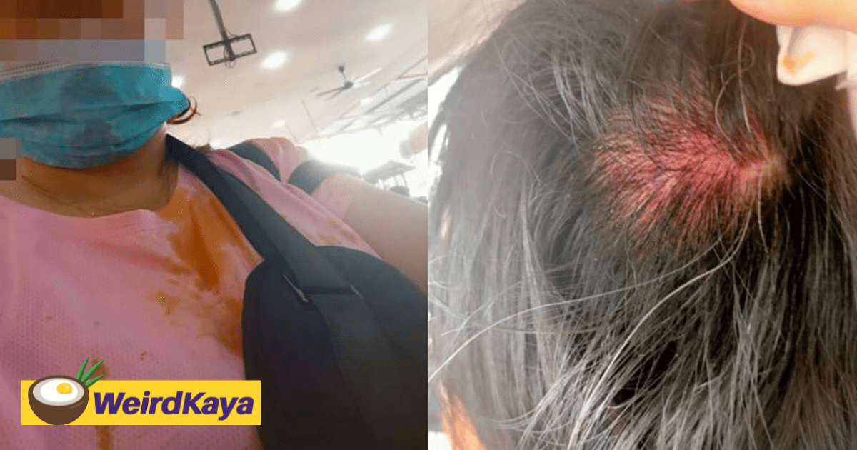 A woman suffered injuries to her head after she complained that nasi lemak being sold for RM12 by a stall owner was too expensive.
