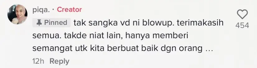 @piqa. later thanked netizens for their support and added that she hopes the video will motivate others to do good deeds for those around them.