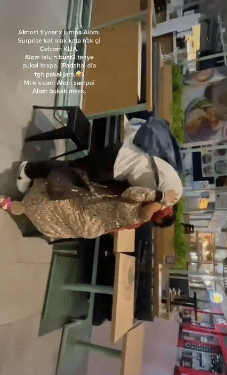 In a viral TikTok video uploaded by @sufiahnazirah, her brother Alom finally reunited with their mother after close to a year of not being able to meet her in the flesh.