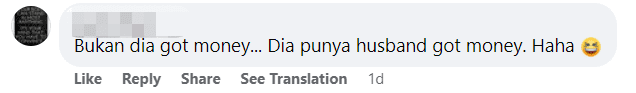 “It’s not that she has money. Her husband’s the one who has the money. Haha.”