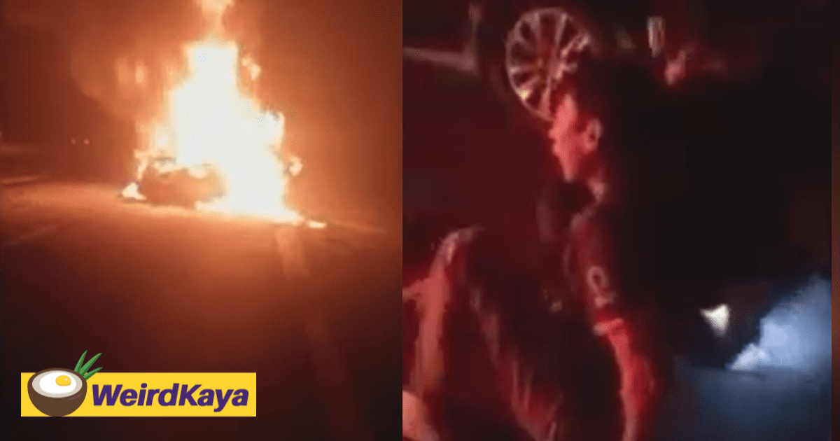 In a 1-minute 37-second video that had gone viral on social media, it showed a distraught Redzuan weeping and wailing for his wife as he watched the car getting swallowed in flames.